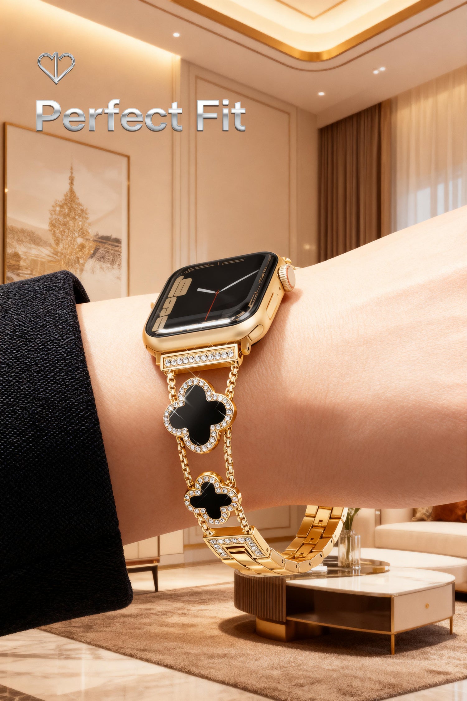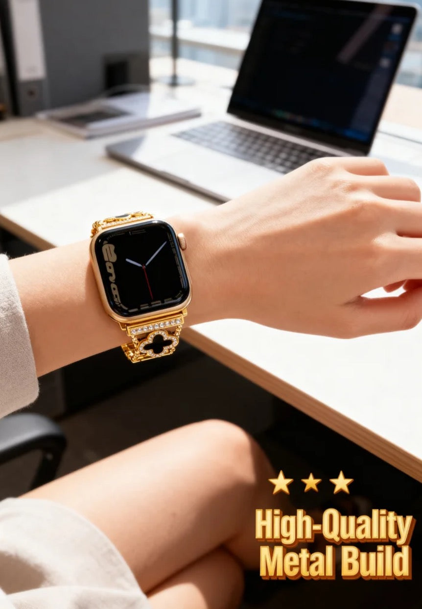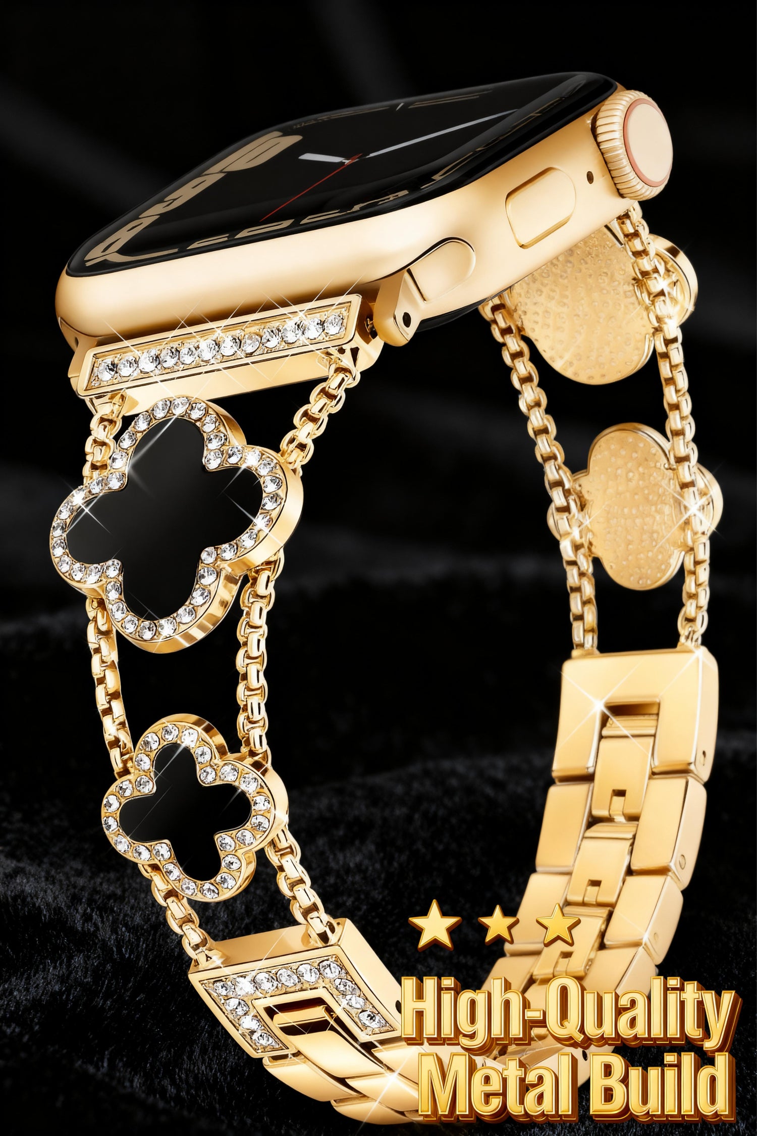 🌟 Gold Clover Apple Watch Band – Luxury Jewelry Style