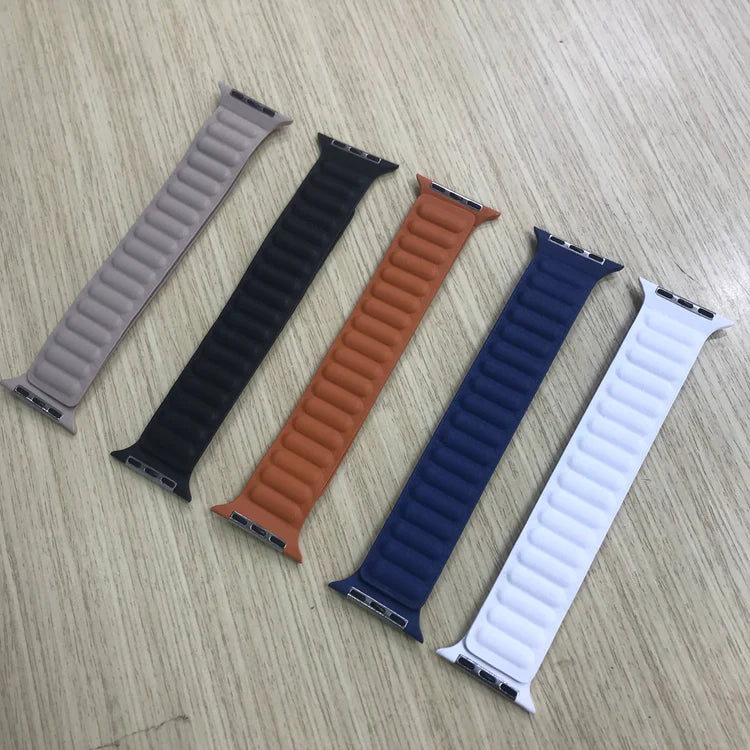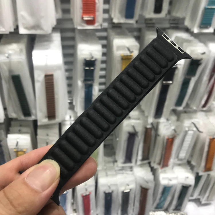 Crafted from soft, padded leather with built-in magnetic segments, this strap delivers a secure fit and premium feel throughout the day.