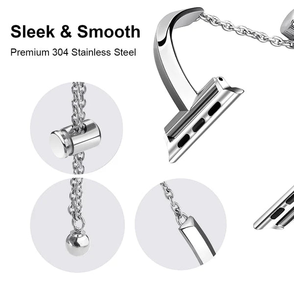 Refined yet minimalist, this bracelet-style Apple Watch band by iBandgear blends sleek curves with a functional chain clasp. Designed for women who appreciate clean design and everyday comfort.
