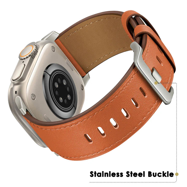 A sleek, minimalist design with fine stitching and a timeless leather grain finish makes this band suitable for both business and casual wear.